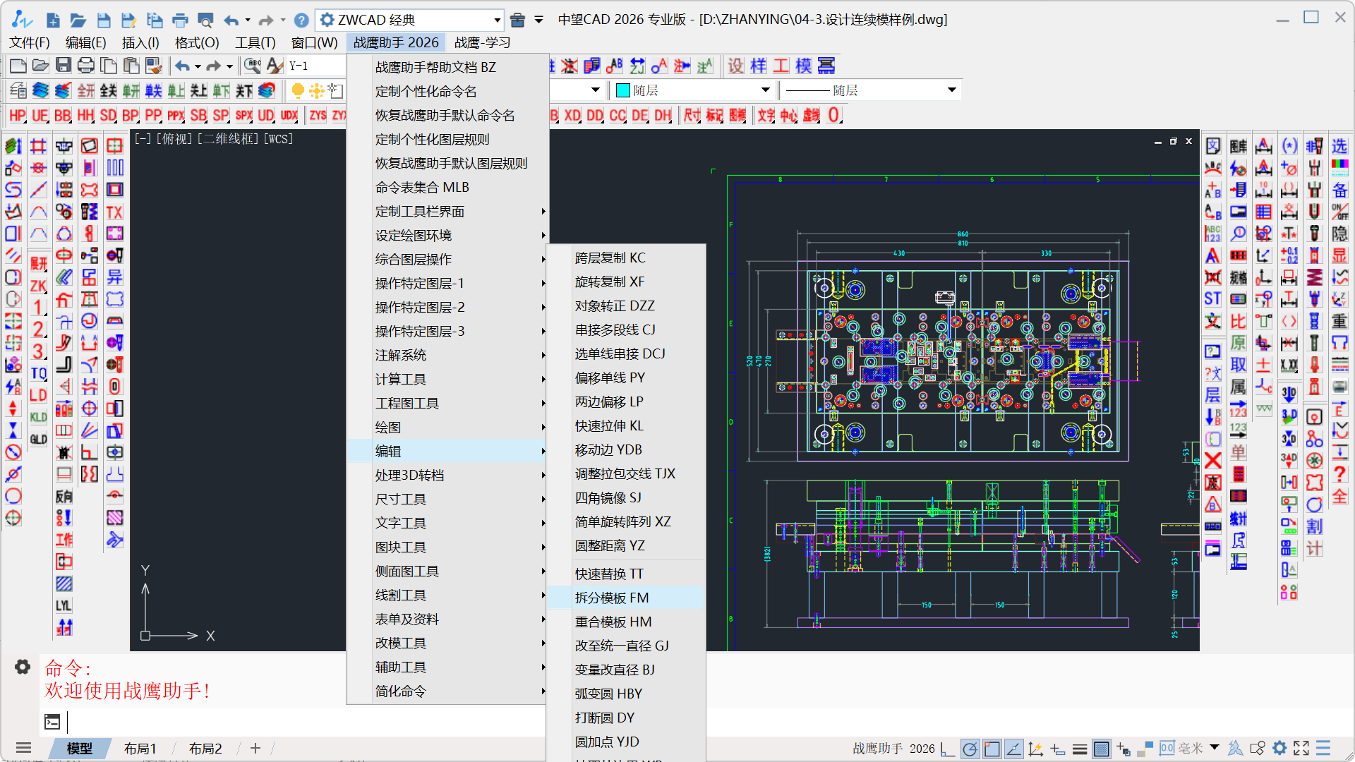 战鹰助手主要应用于五金模具设计。在模具报价、制作工程图、设计模具图档、修改模具图档、辅助把3D模具图拆成2D图纸等应用场景帮助相关工作人员高效完成图纸设计。